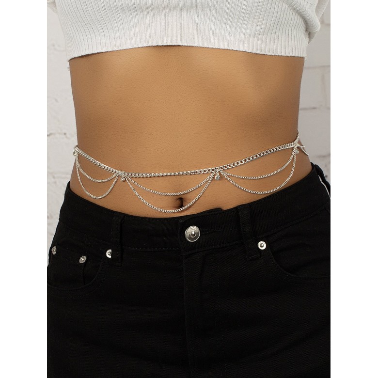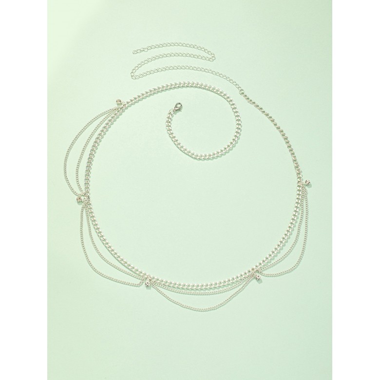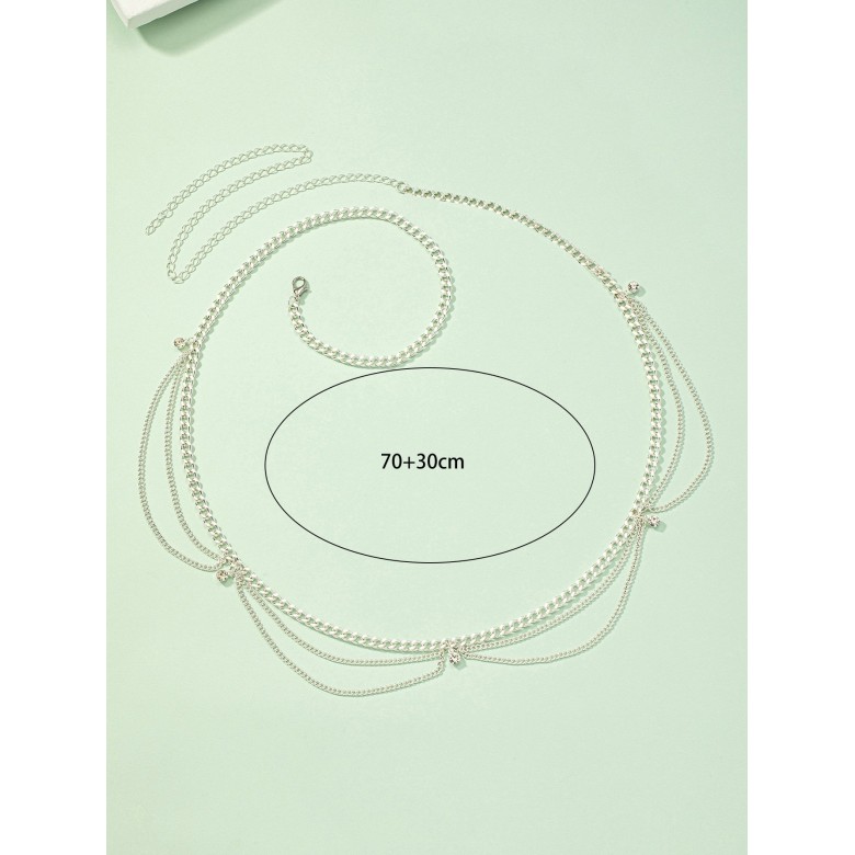 Material:Iron AlloyThe Rhinestone Decor Waist Chain is a stunning piece of jewelry that adds a touch of glamour and sophistication to any outfit. This unique waist chain features delicate silver chains that wrap around your waist and are adorned with sparkling rhinestones.Crafted from high-quality materials, this waist chain is both durable and lightweight, making it comfortable to wear for extended periods. The intricate design creates an elegant and eye-catching piece that will draw attention and compliments wherever you go.The silver chains of the waist chain are adjustable, ensuring a comfortable and secure fit on any body type. The rhinestone decorations add a touch of elegance and glamour, creating a beautiful piece that can be worn alone or layered with other jewelry.This waist chain is perfect for special occasions such as proms, weddings, or any formal event. It adds a touch of sophistication to any dress or outfit, creating a cohesive and striking look that is sure to turn heads.The Rhinestone Decor Waist Chain also makes a wonderful gift for a friend or loved one who loves to accessorize and stand out in a crowd. Whether for a birthday, anniversary, or just because, this waist chain is sure to delight anyone who receives it.In summary, if you are looking for a beautiful and unique way to accessorize any outfit, then the Rhinestone Decor Waist Chain is the perfect choice. Its exquisite design, high-quality materials, and versatility make it a must-have addition to any jewelry collection. So why wait Add a touch of glamour to your wardrobe today with this stunning waist chain.