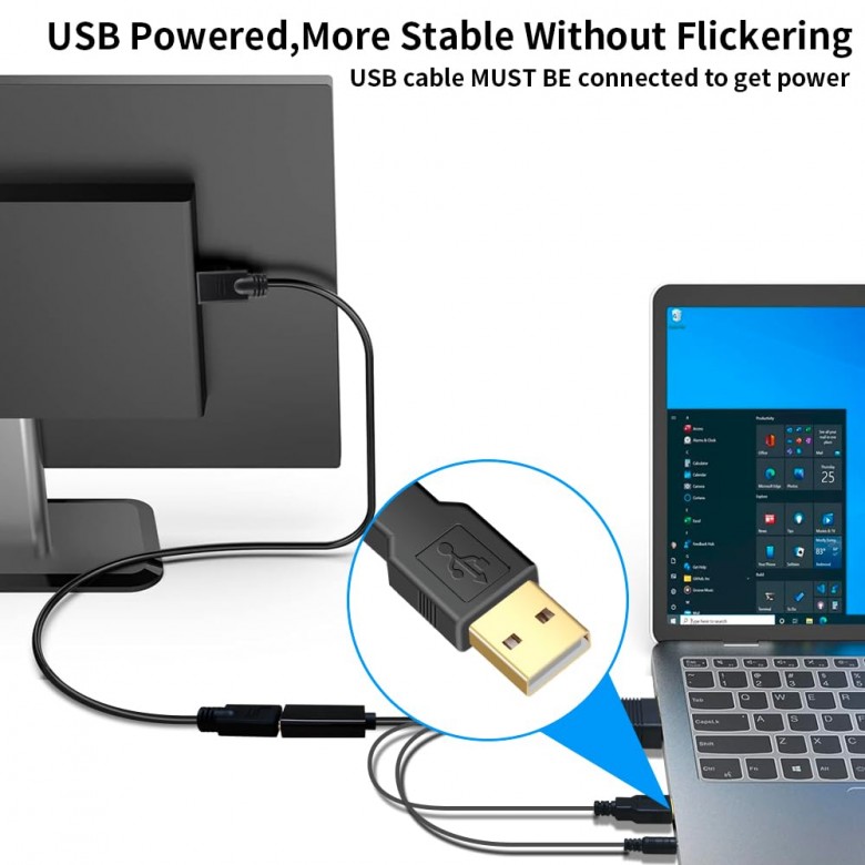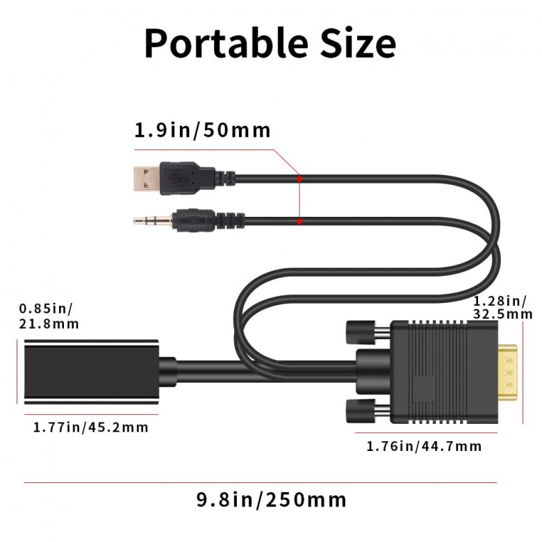 - Built-in Mini Jack and USB Power Supply: Built-in 3.5mm audio supports audio signals to be transmitted for an immersive multimedia experience. The adapter's audio and video synchronization ensures perfect playback of multimedia. The adapter is powered by USB, which ensures a reliable power source.