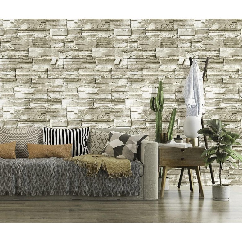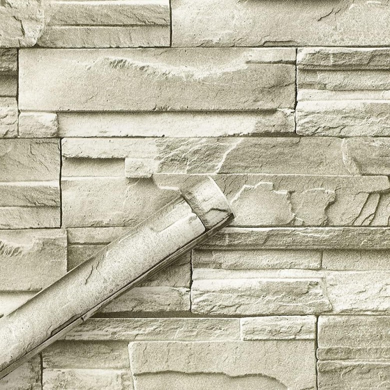 • Stone Wallpaper,1.5ft X 30ft=45 sq.ft. Stone wallpaper is made of vinyl. It has been upgraded twice and the backside has been brushed with a new removable adhesive that greatly improves removability with moderate adhesion. Brick contact paper restores the real brick wallpaper texture for you, clear and natural pattern, faux stone brick design, elegant and generous.