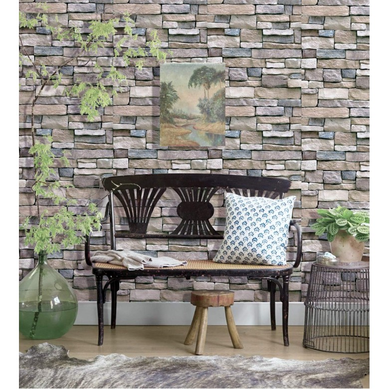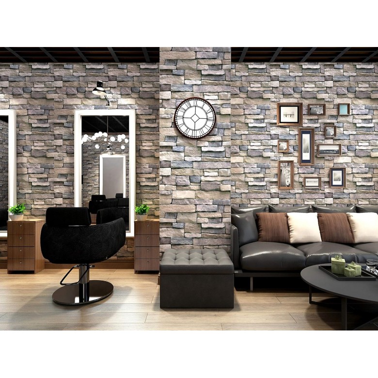 SODENO Peel and Stick Faux Textured Stone Wall Look Removable Wallpaper for Home Decoration 17.7''x236.2