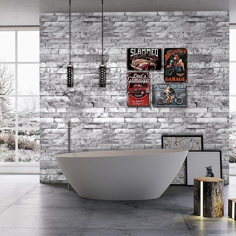 - MATERIAL & SIZE - This gray brick wallpaper is crafted from high-quality vinyl material, measuring 15.7" x 118" and covering an area of 12.91 square feet. It is versatile and suitable for a variety of spaces, including bathrooms, kitchens, backsplashes, fireplaces, bedrooms, offices, and stairs. Perfect for both renters and homeowners, it offers a DIY-friendly solution.